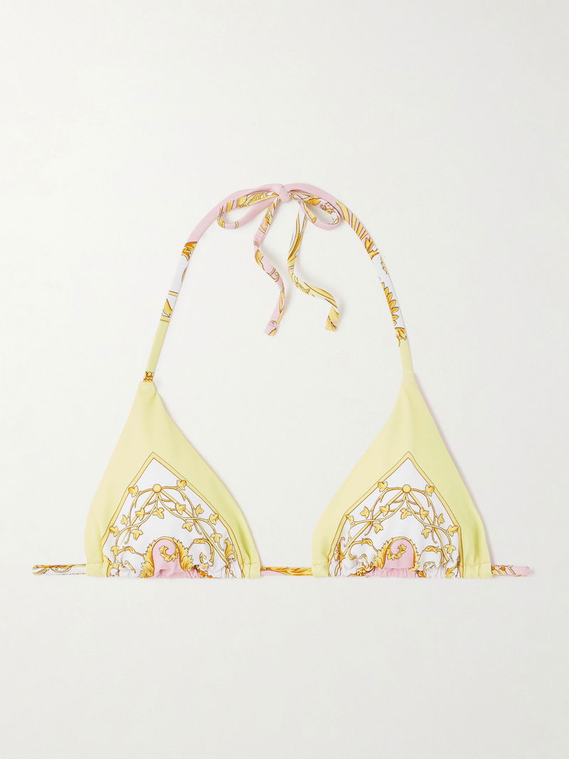 Versace's bikini top is printed with a vibrant version of the house's iconic baroque-inspired motif. It's made from quick-drying, stretch fabric with triangle cups and adjustable straps. Take yours on vacation with the matching briefs and pareo.