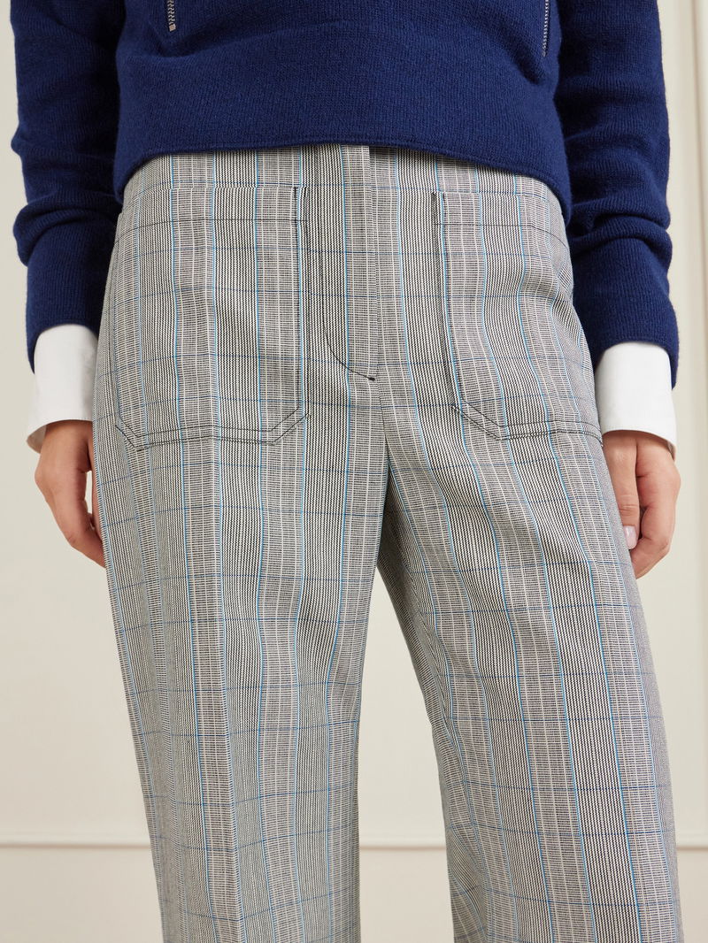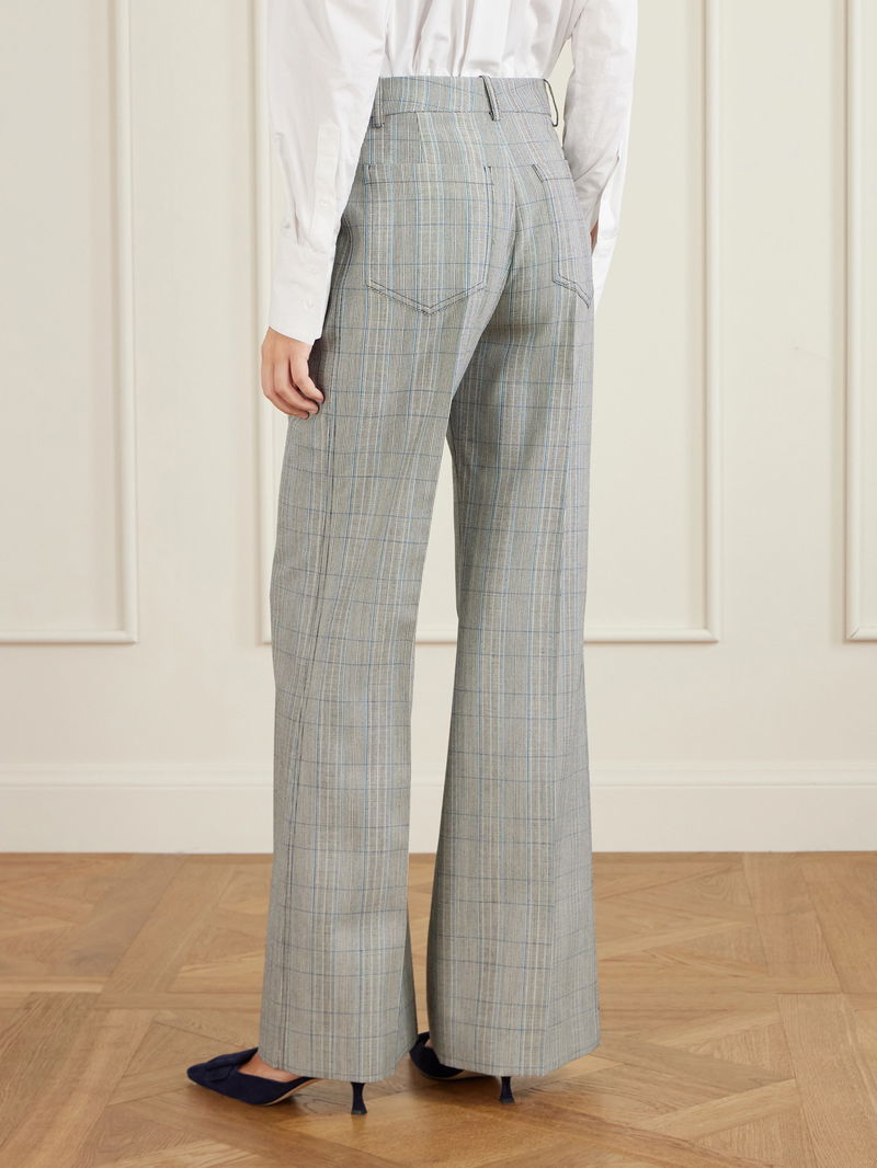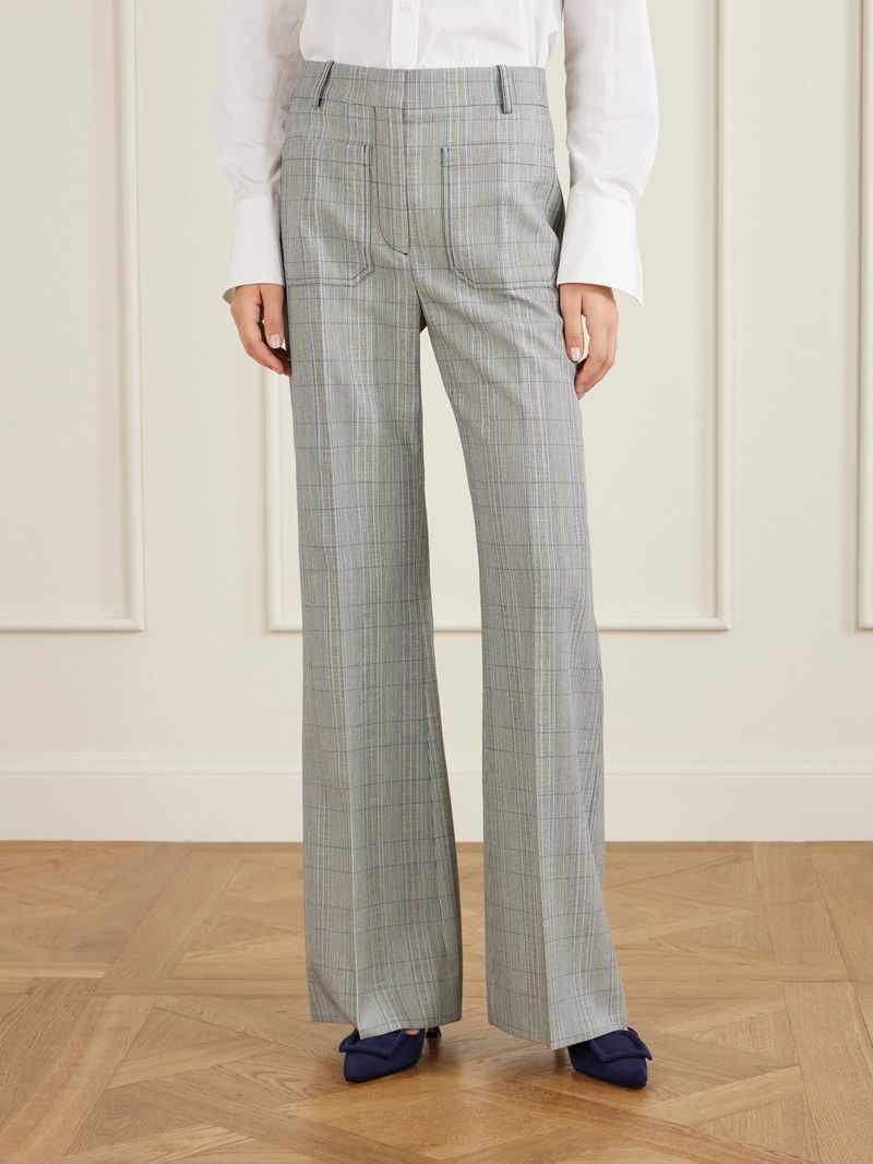 Victoria Beckham's 'Alina' pants return for another season, this time reimagined in charming heritage checks. Tailored from wool, they have a high-rise fit and wide legs inspired by the '70s.