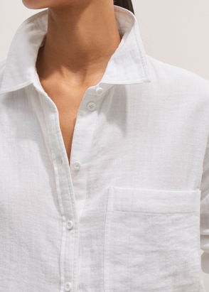 Shirt, Devoré, Pleated back, Buttoned cuffs, Breast pocket, Curved hem, Button fastenings through front, Lightweight fabric.
