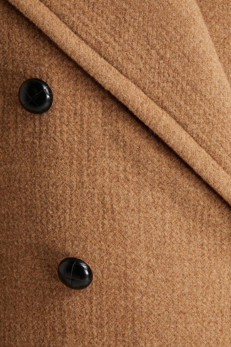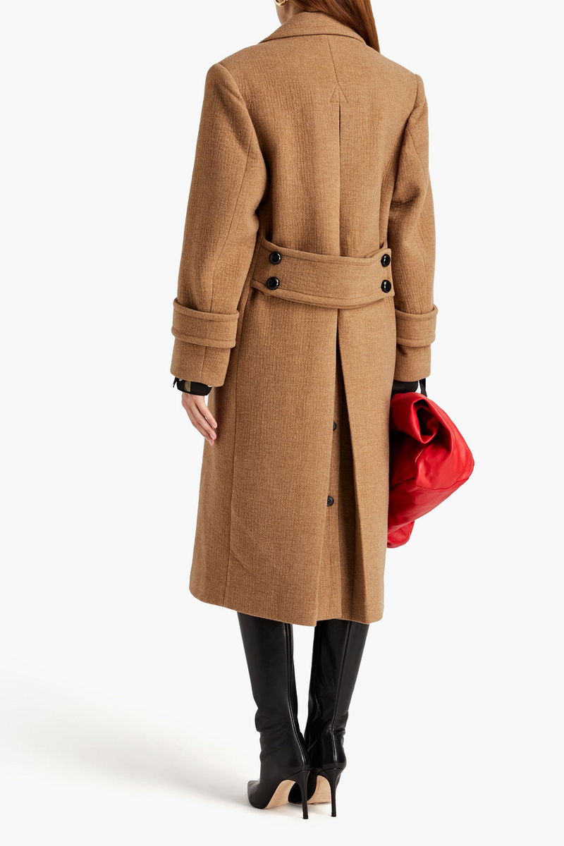 Coat, Wool and cashmere-blend, Half-belt, Pleated back, Two front flap pockets, Fully lined, Button fastenings through double-breasted front, Non-stretchy fabric, Weighted fabric.