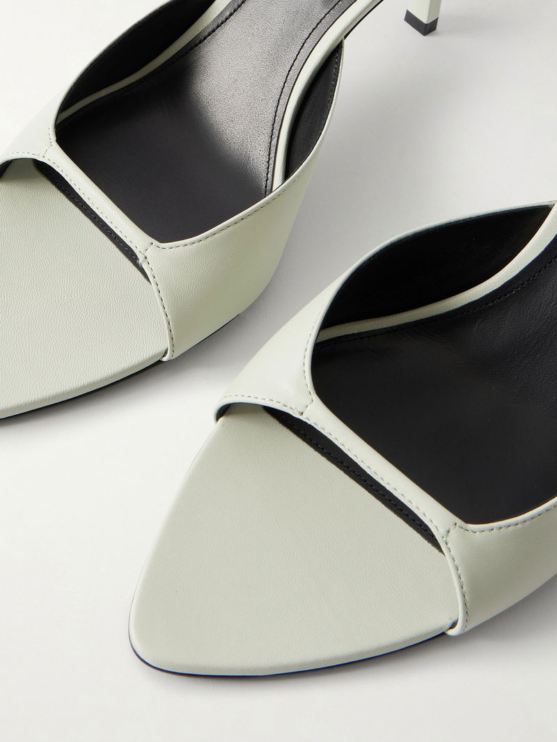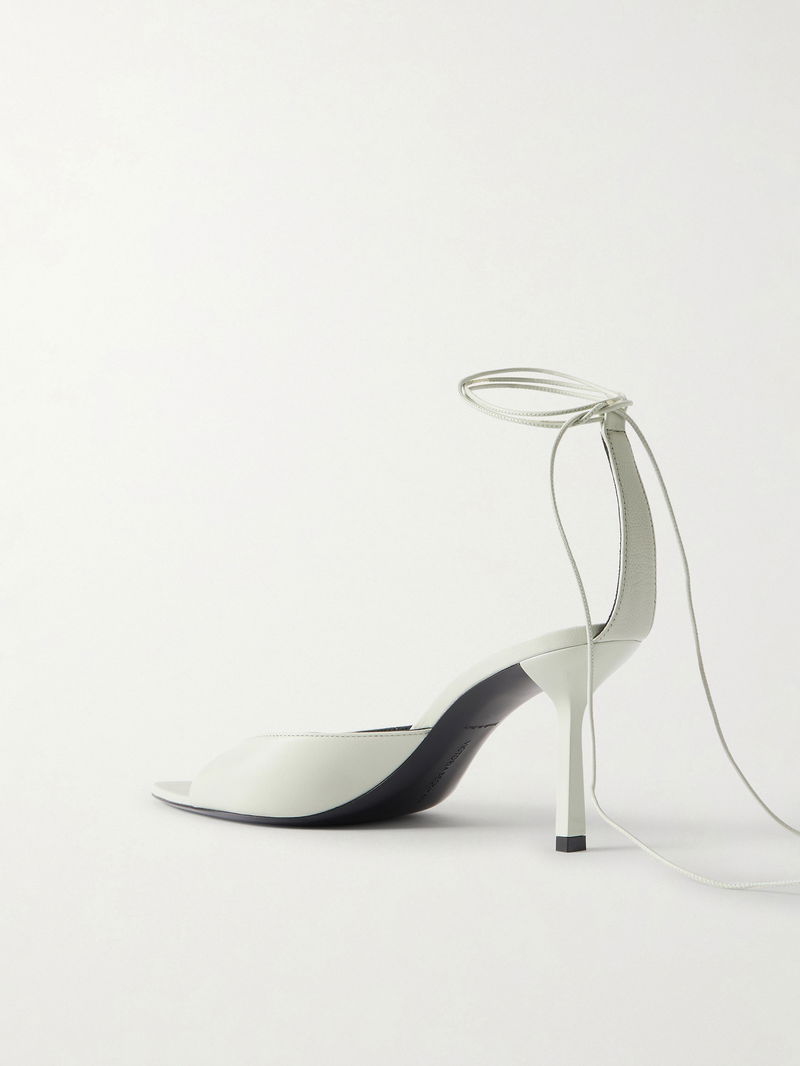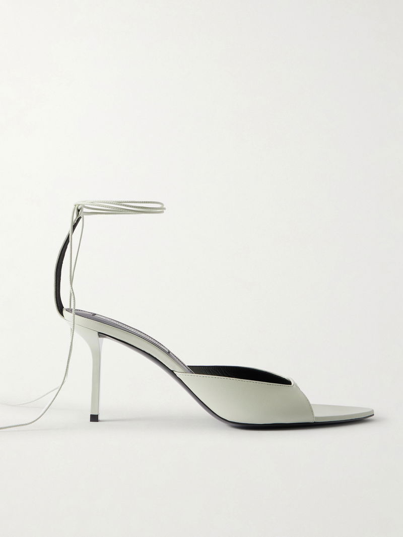 Victoria Beckham's 'Eliza' sandals look just as good with tailoring as they do with dresses. They've been made in Italy from soft 'Aloe Green' leather and have elegant ties.