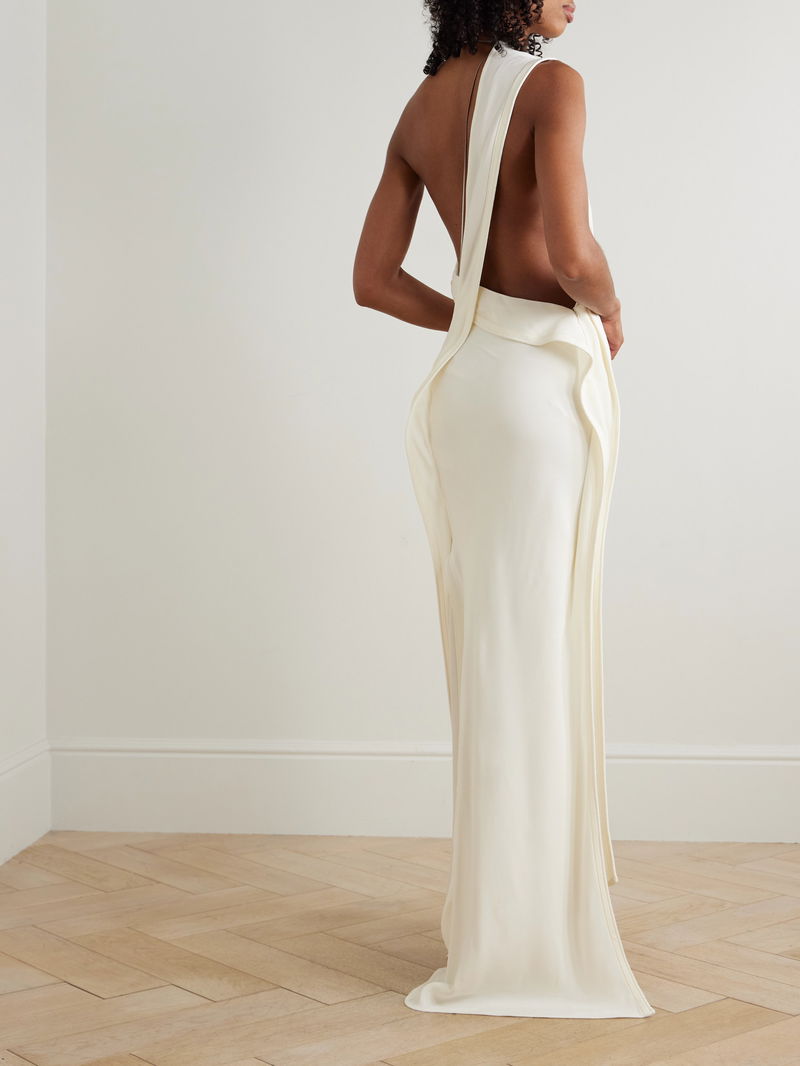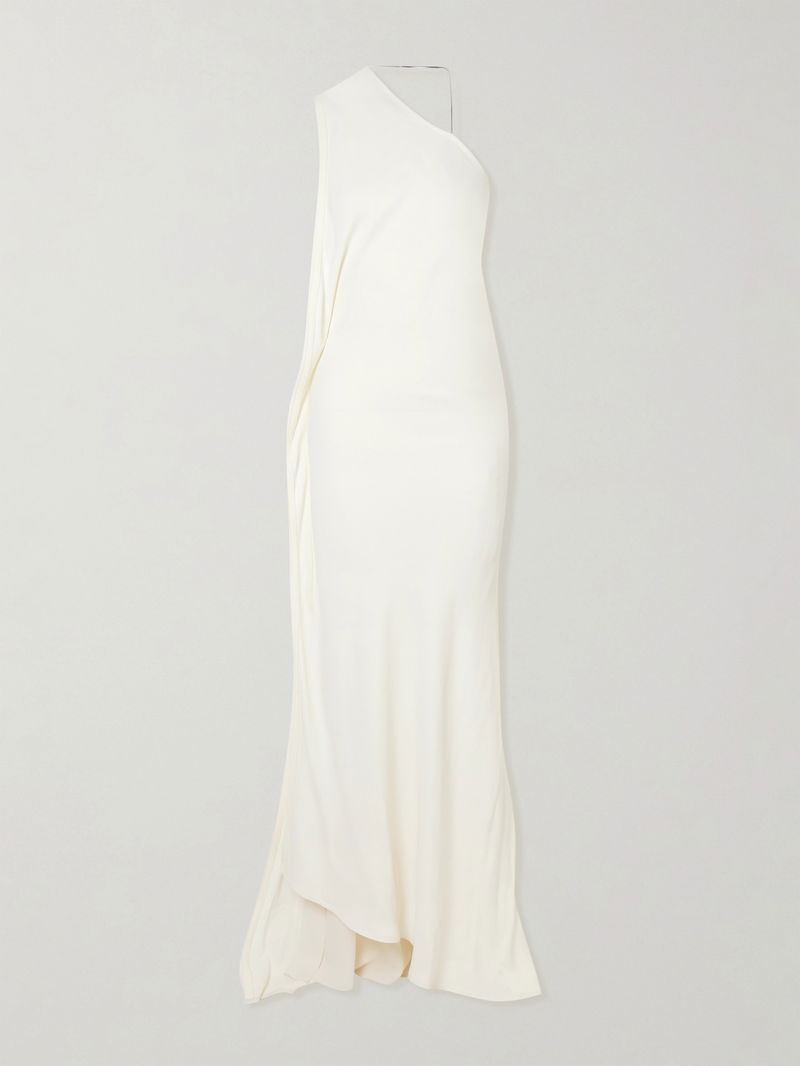 One-shoulder Open-back Embellished Draped Ribbed-knit Gown