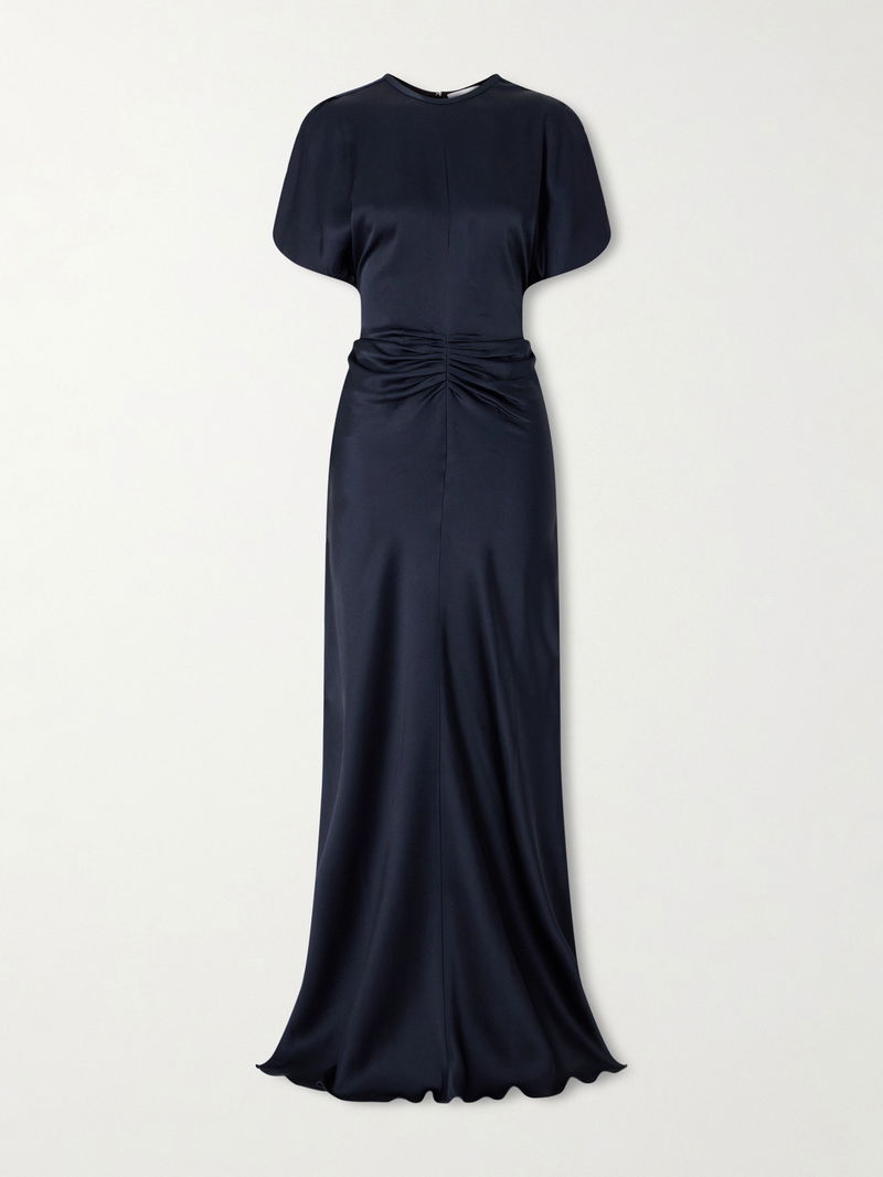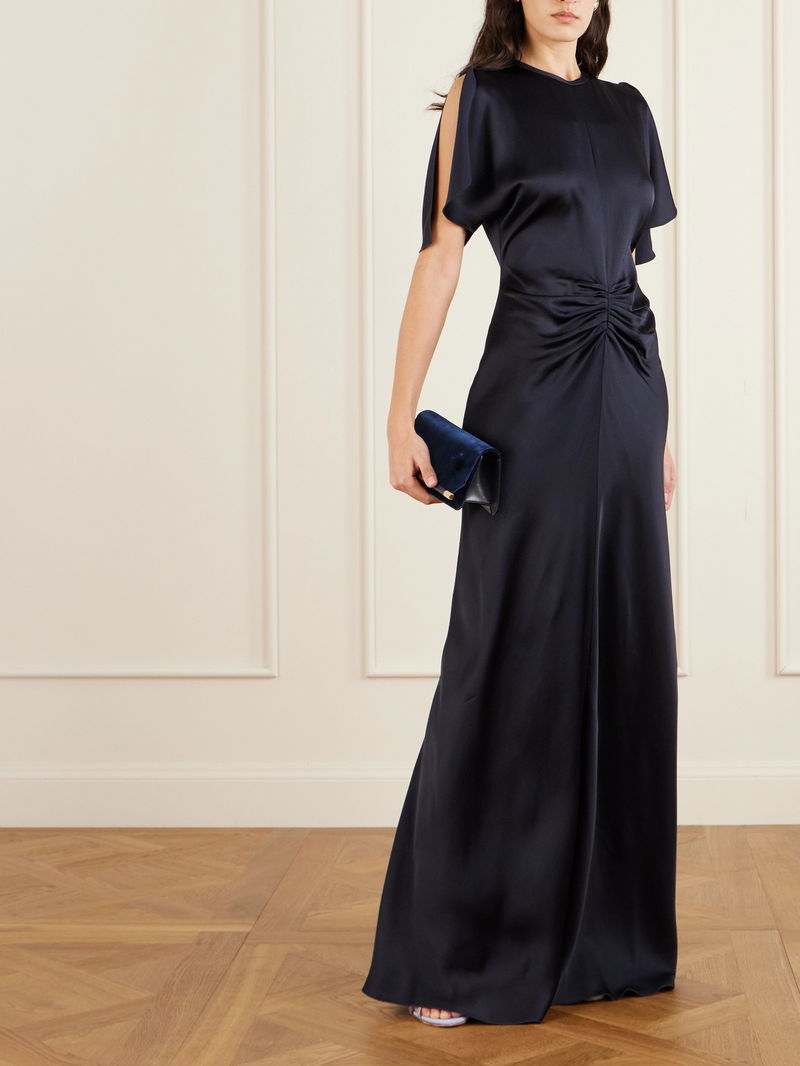 Ruched Satin Maxi Dress