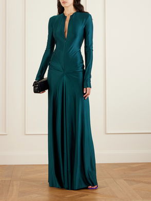Description: Victoria Beckham's gown has a boned construction that creates a sculptural 'wave' effect across the strapless neckline. It's made from smooth jersey that's gently gathered throughout and falls to a dramatic floor-pooling hem. Wear yours with drop earrings. - Net a Porter Materials: 80% viscose, 20% polyamide Product Code: 1647597360280961