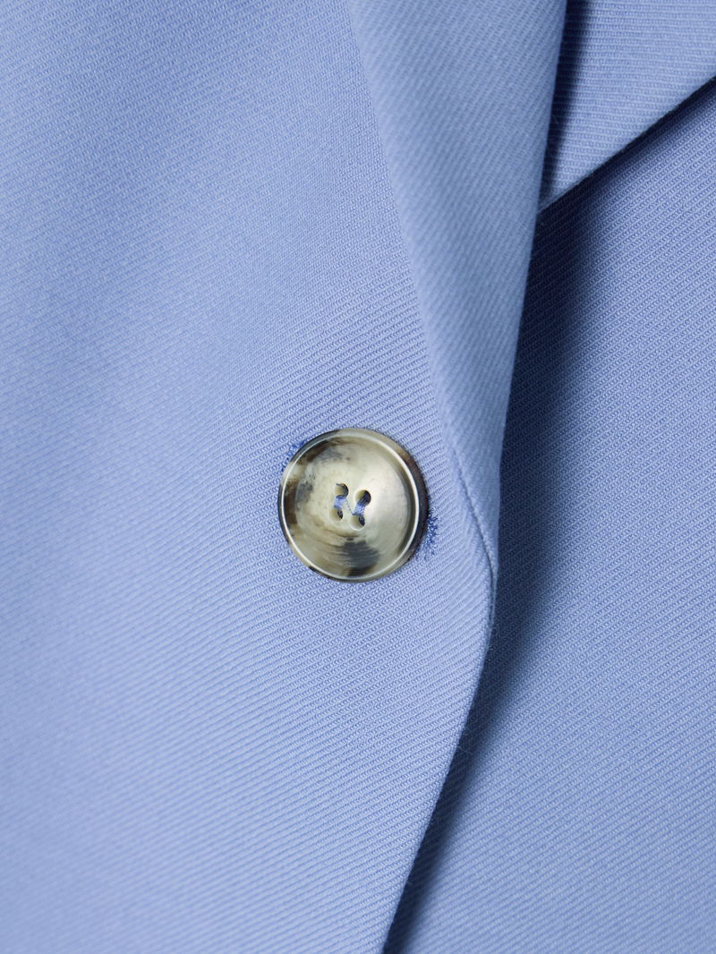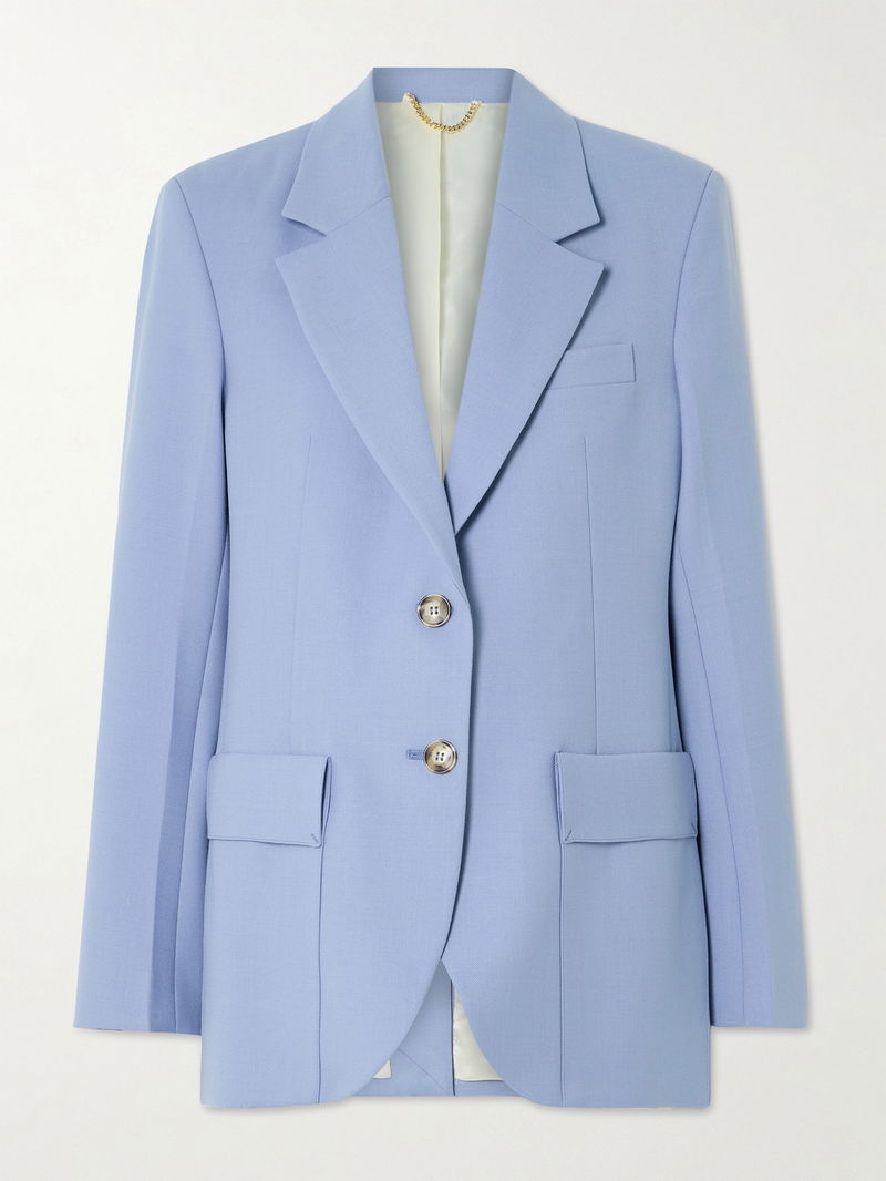 The hushed 'Bluebell' shade of Victoria Beckham's blazer is so effortless and elegant – it'll look beautiful with the matching pants, but you could team it with neutrals to add a little color, too. Meticulously tailored from twill, it has neat, slim proportions with notch lapels and two buttons closing the front. The interior is lined in glossy satin for a luxurious feel.