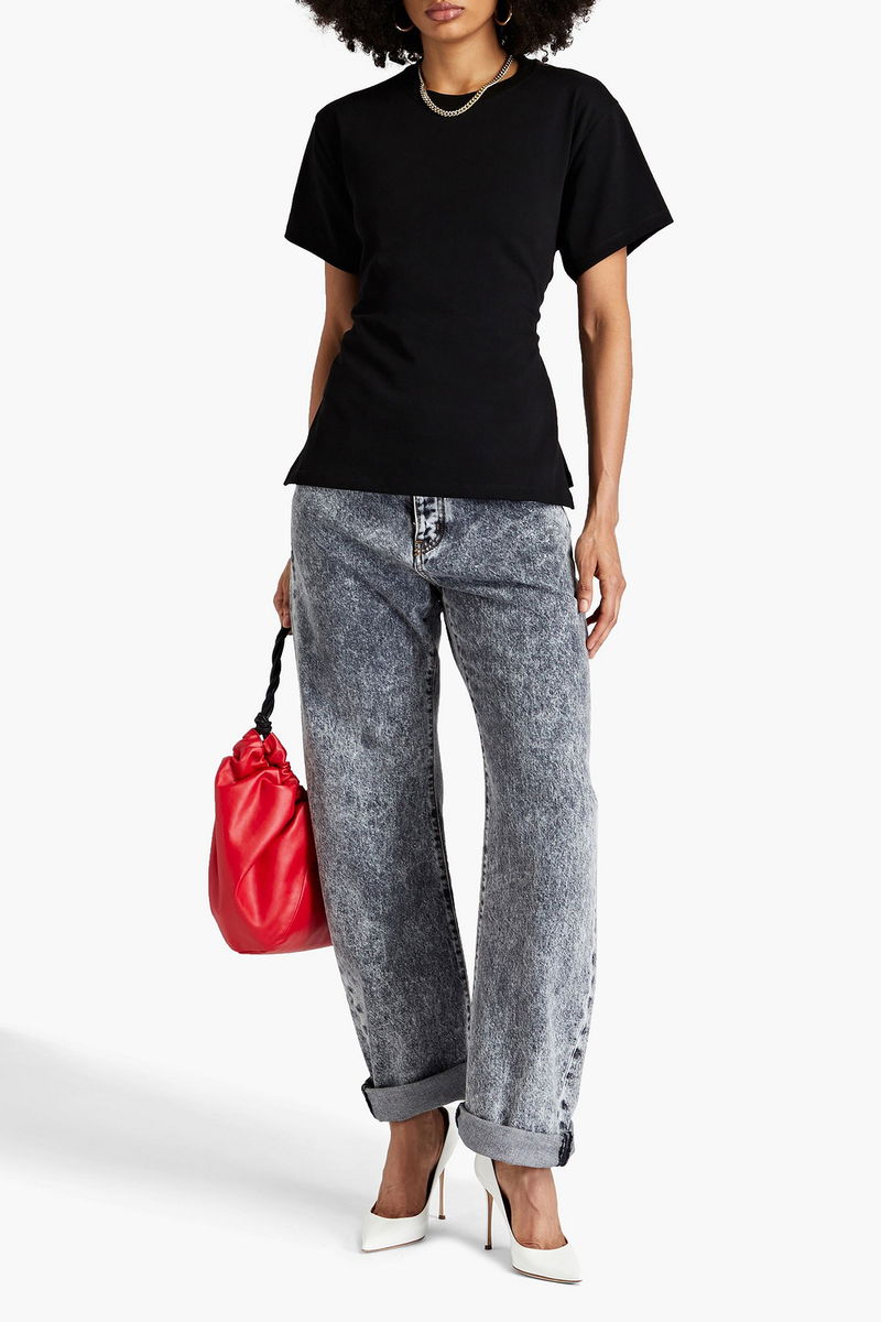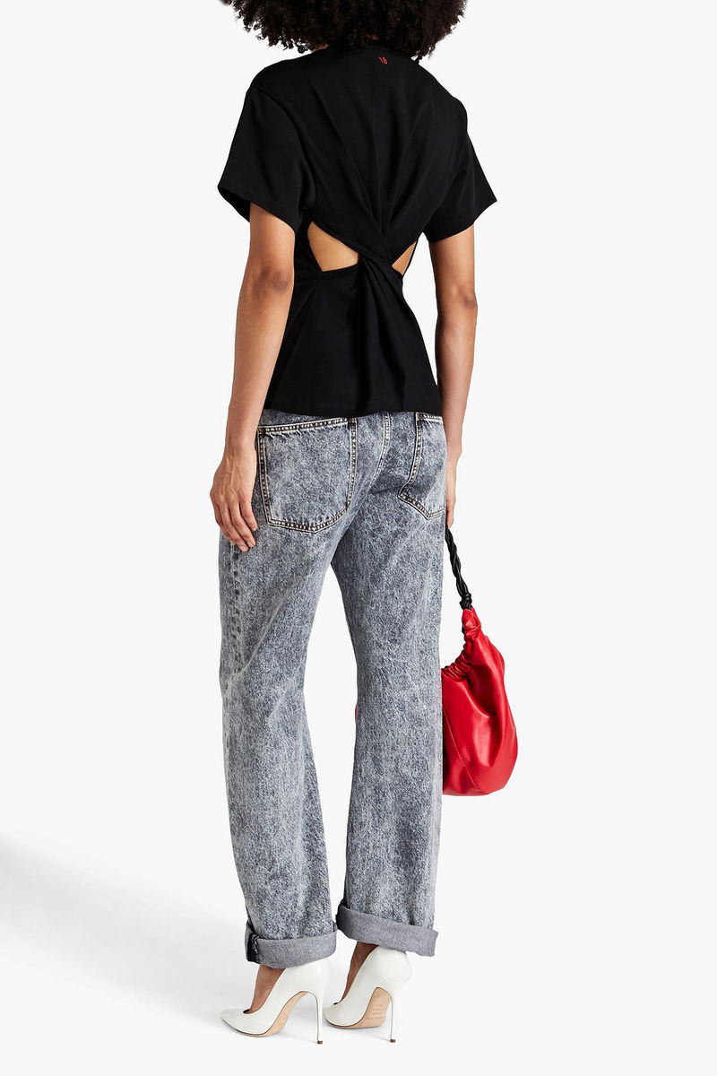 T-shirt, Organic cotton-jersey, Twisted, Side slits, Slips on, Stretchy fabric, Mid-weight fabric.