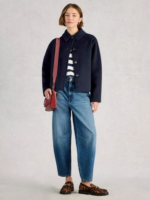 Shirt jacket, Cotton-blend jersey, Breast pockets, Button fastenings through front, Mid-weight, slightly stretchy fabric.
