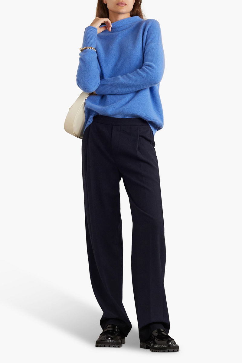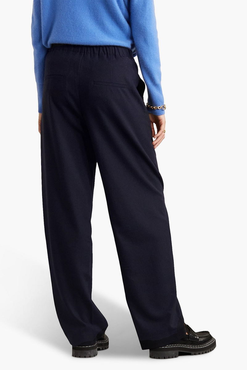 Straight-leg pants, Wool-flannel, Pleated, Two side slit pockets, Two back welt pockets, Partially elasticated waist, High-rise cut, Pull on, Non-stretchy fabric, Mid-weight fabric.