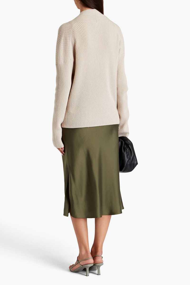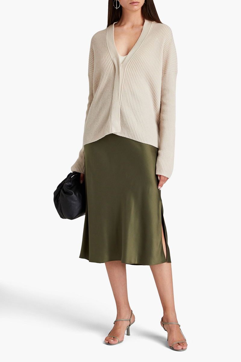 Cardigan, Wool and cashmere-blend, Ribbed, Concealed button fastenings through front, Mid-weight knit.