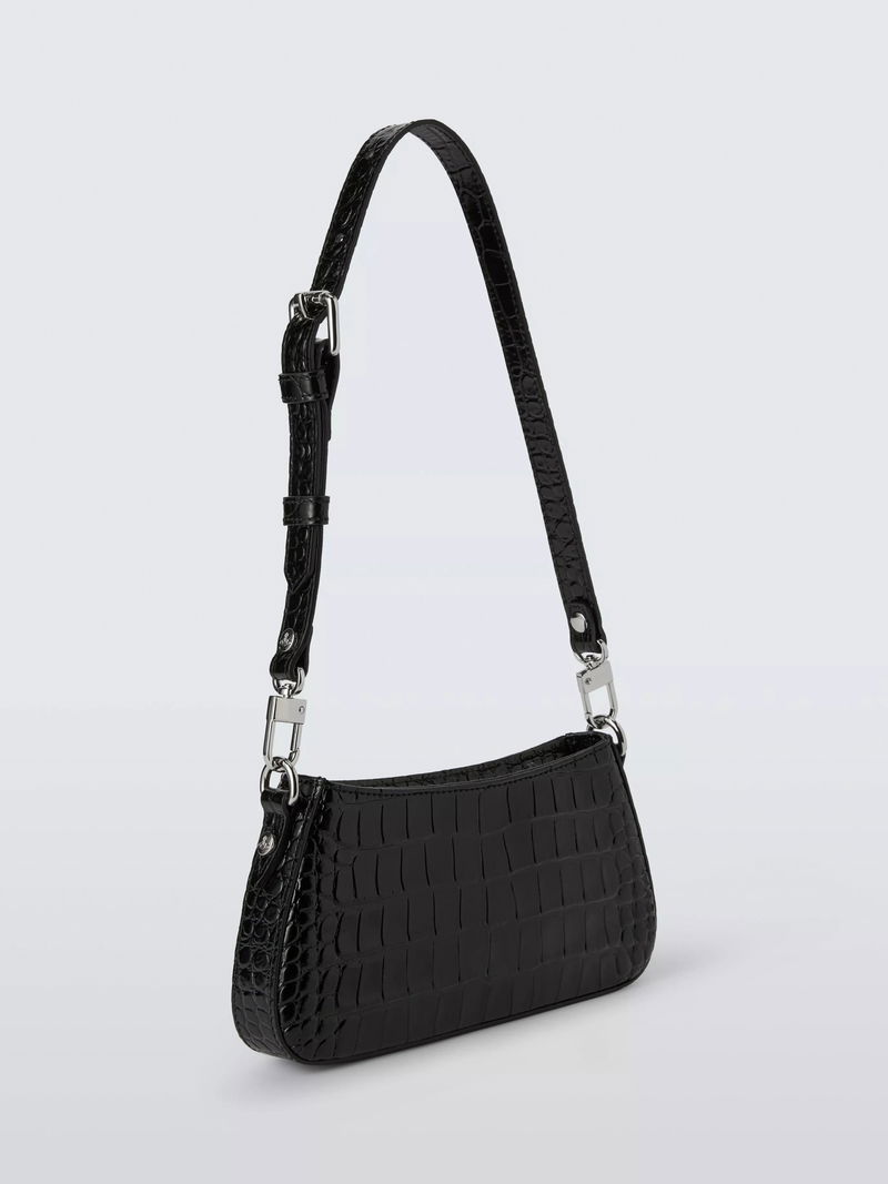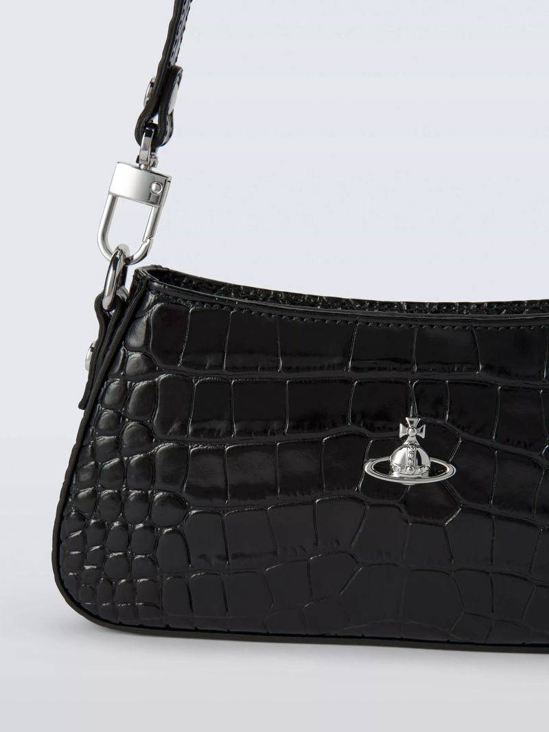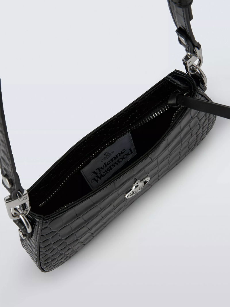 Vivienne Westwood leather shoulder bag with a textured croc pattern, zip fastening, adjustable strap and lined interior, featuring the brand's iconic orb symbol displayed for a standout finish.