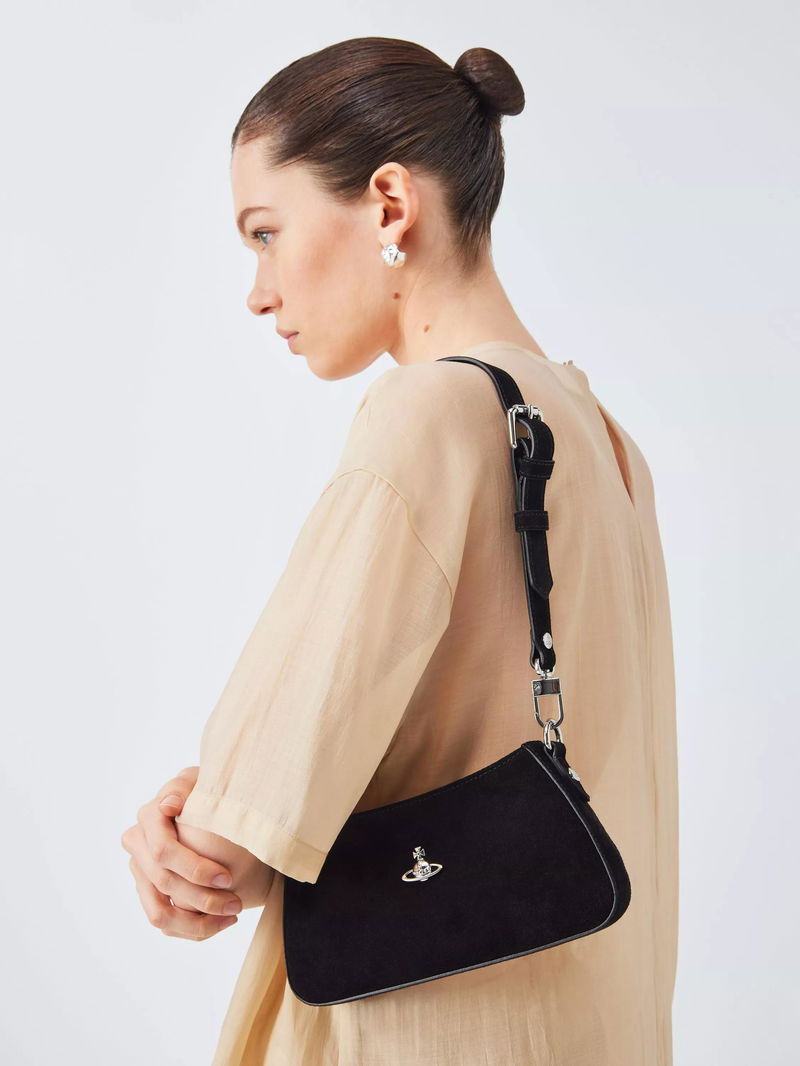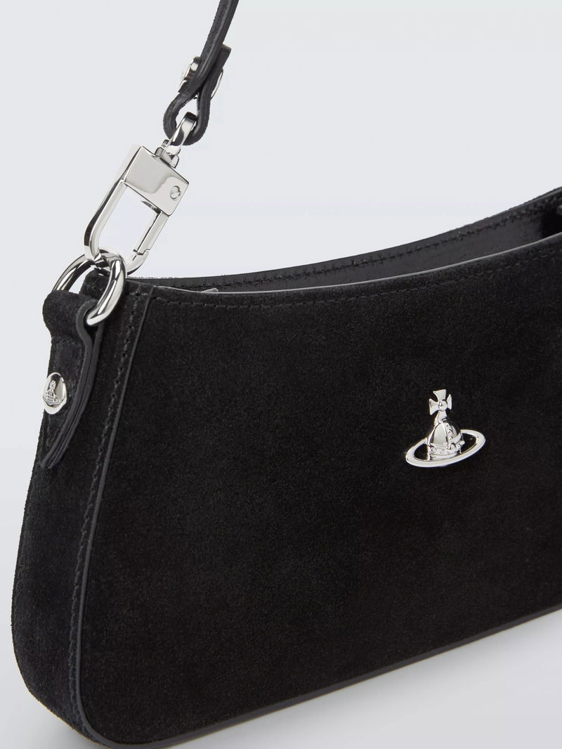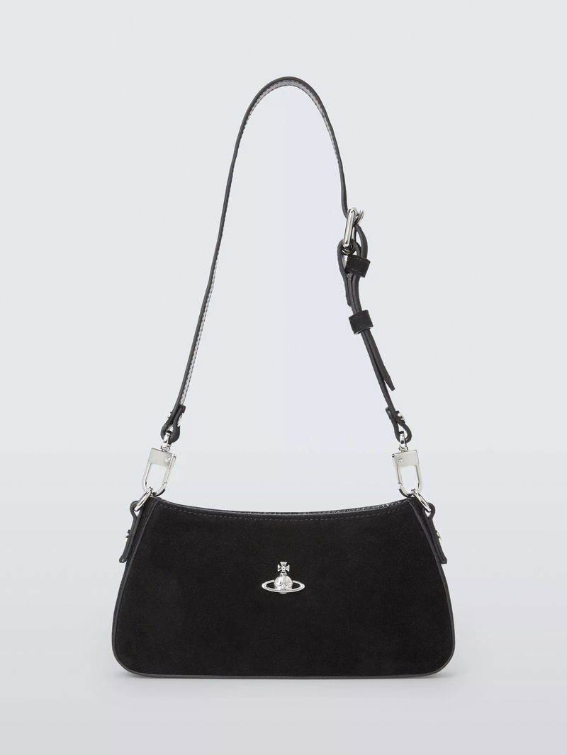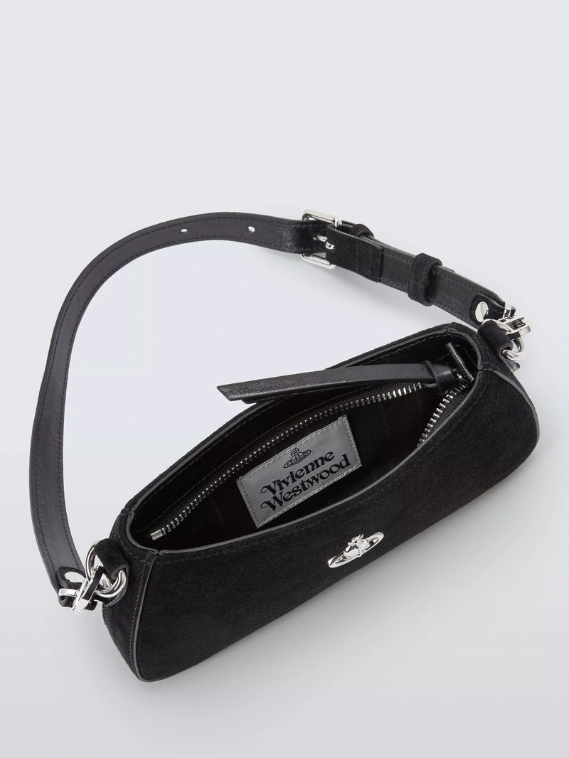 Crafted from supple suede leather and adorned with the house's signature metal hardware. At the front sits a bas relief orb motif, which represents tradition, encircled by the celestial rings of Saturn, symbolising the future.
