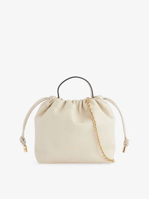 Mini bag. Smooth leather. Chain strap. Logo in gold letters. Visible topstitching. Worn in the hand or on the shoulder.