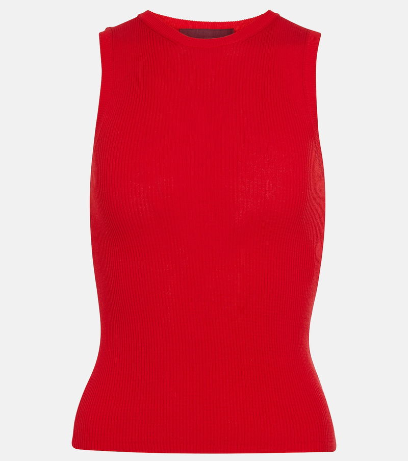 Versatile staples like this tanktop from Wardrobe.NYC will take you seamlessly from work to the gym. It's made from a finely ribbed technical knit fabric to a bodycon silhouette that's as striking as the piece's red color.