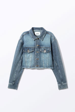 Wardrobe.NYC's elegant everyday essentials are produced in limited numbers with the needs of modern urban life in mind. A timeless design reimagined in a cropped fit, this denim jacket is accented with faux pearl buttons and contrasting topstitching.