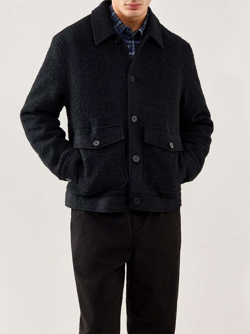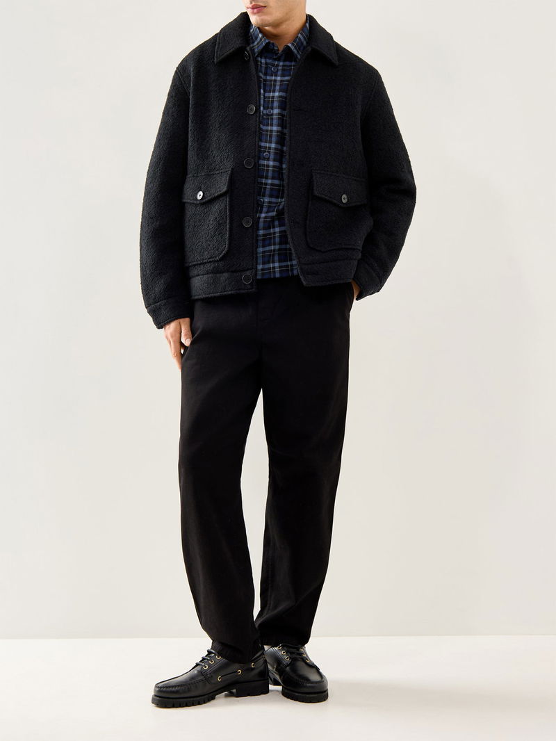 The Newgate Jacket by WAX London combines a streamlined silhouette with a durable cotton-rich fabric. Its neat collar, pockets and minimal detailing deliver modern, understated outerwear. A considered addition to contemporary wardrobe styling.
