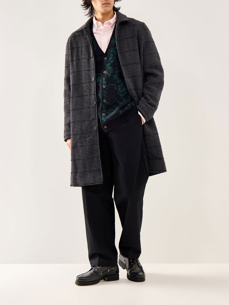 Wax London’s wool-blend coat features a clean silhouette with contrast facing and streamlined shoulders. Designed for modern wardrobing — refined outerwear that works across tailoring and denim.
