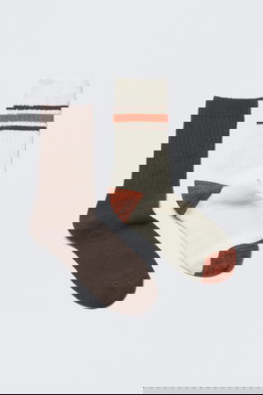 A three pack of ribbed socks made from soft cotton and recycled polyester enhanced with a touch of recycled elastane for extra stretch and comfort. They have frilled openings, reinforced toes and heels, and a soft instep.