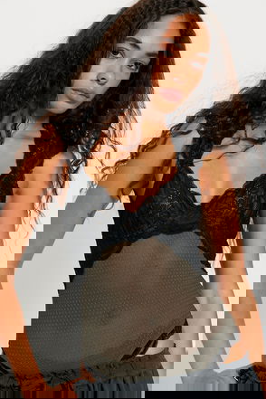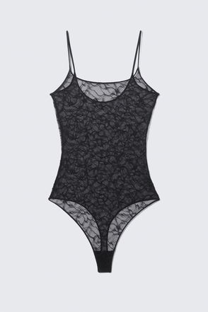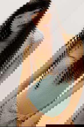 A tank top body suit made from a ribbed soft 100% organic cotton. It has a scoop neck with a racer back and fastens at the crotch.