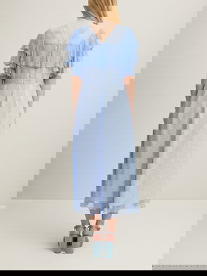 The Agnes Dress is an easy throw-on-and-go piece for the warm days. It has a plunging V-neck, buttoning along the front, a cinching belt at the wait and concealed pockets at the side seams. Available in print and plain. The model wears size small, that measures 114 cm in chest circumference, 91 cm in length and 23 cm in sleeve length.