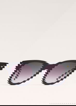 A pair of lightweight frameless glasses with a gradient lens. The have a rectangle lens, metal arms with soft ends.