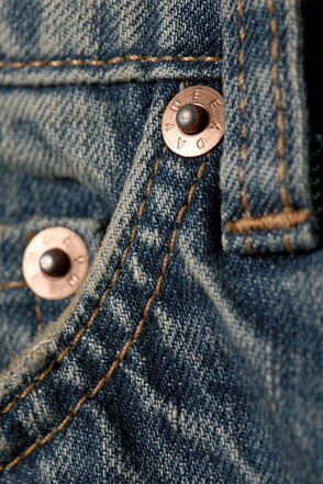 A pair of low rise jeans with a loose fit, wide leg and long length. These jeans are crafted from organic cotton rigid denim enhanced with recycled cotton. They feature a classic 5-pocket design and a zip fly.
