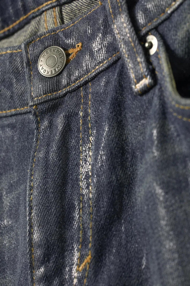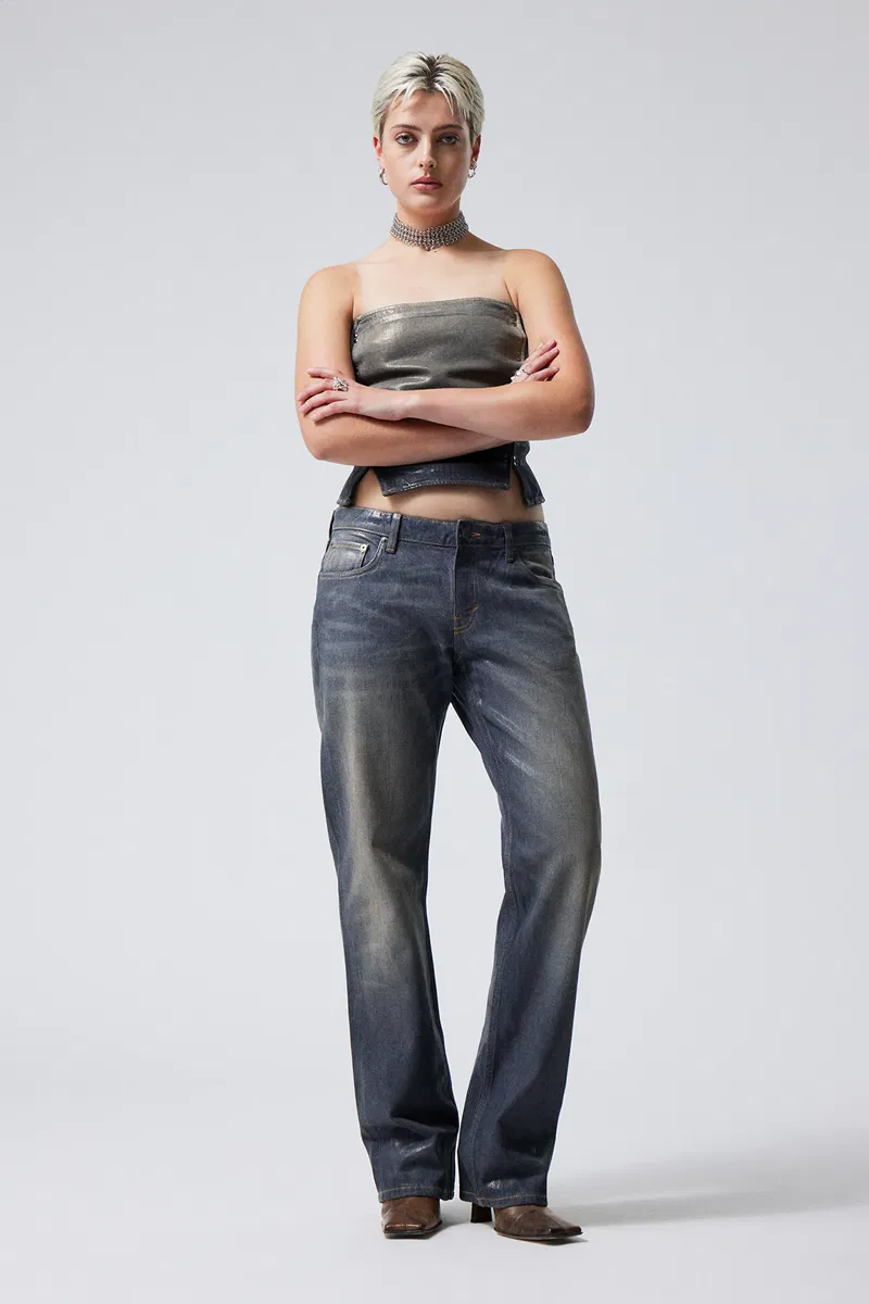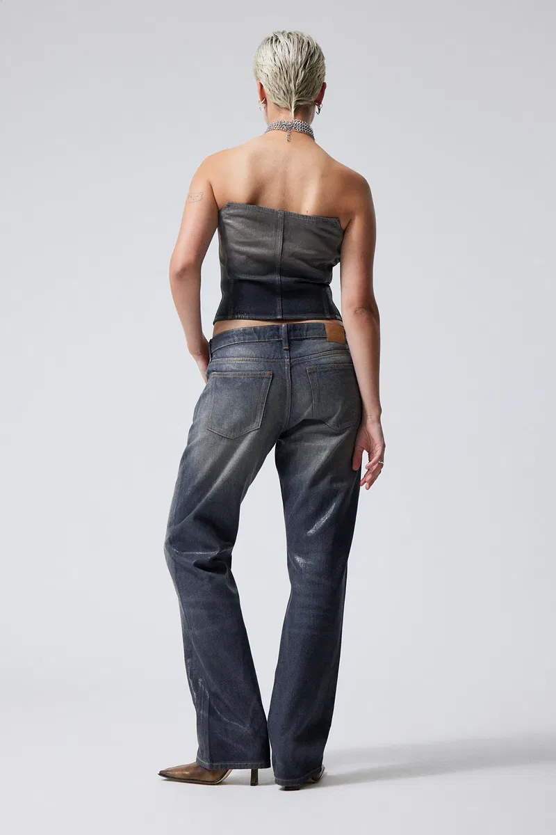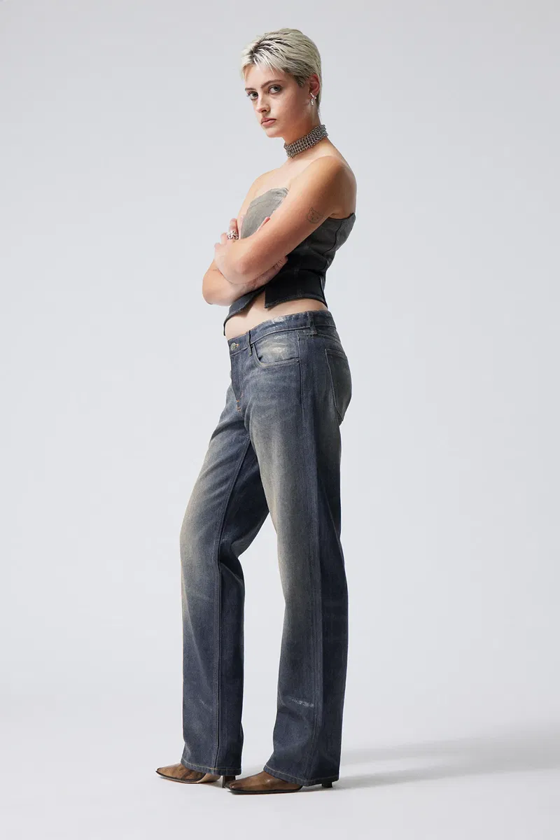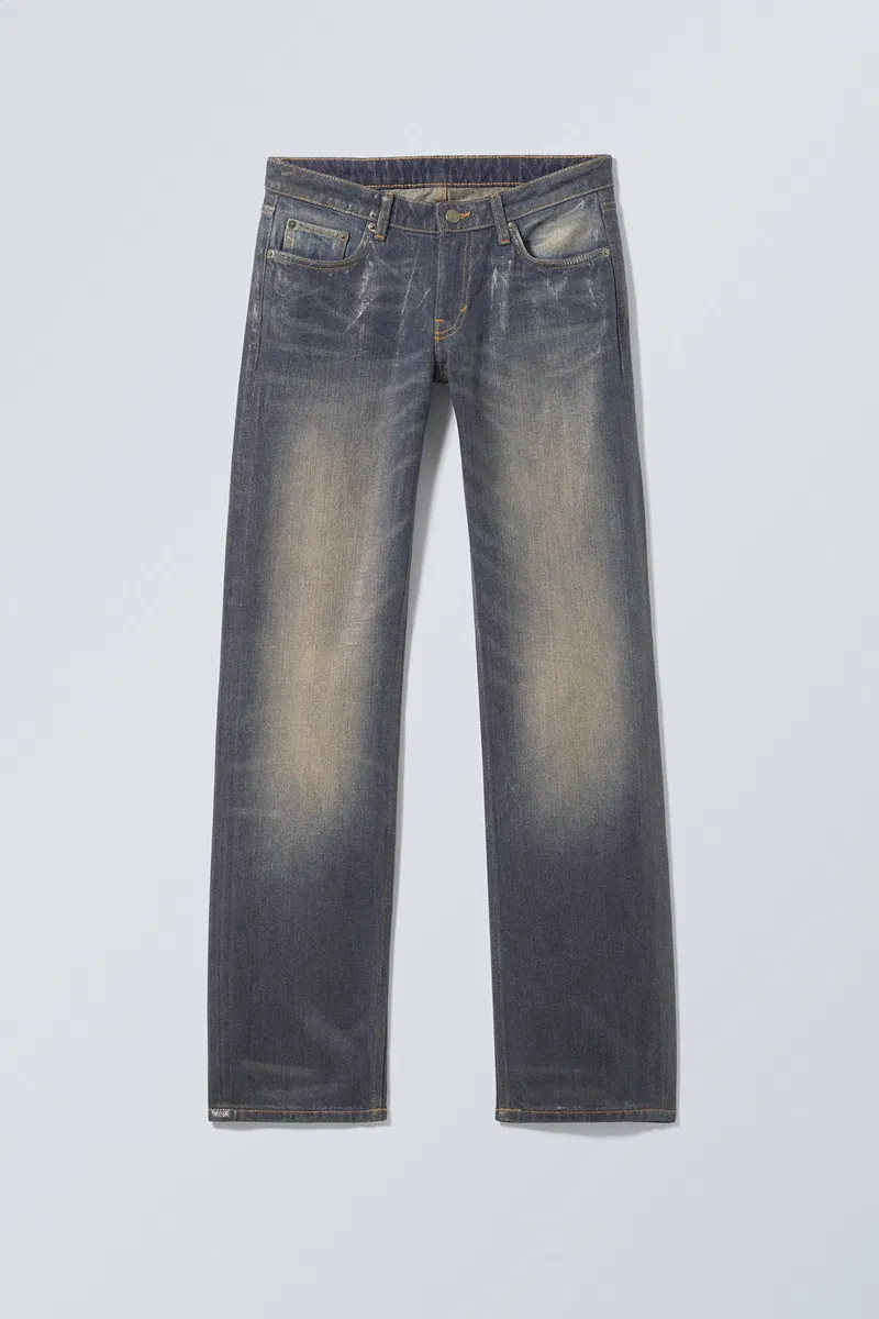 A pair of low-rise straight leg Y2K jeans made from an organic cotton and recycled cotton rigid denim. This popular style has classic five pocket detailing and looks great with most footwear.