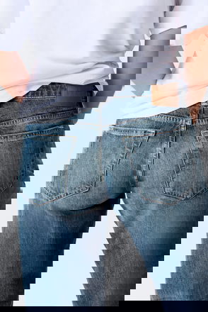 A pair of low-rise straight leg Y2K jeans made from an organic cotton and recycled cotton rigid denim. This popular style has classic five pocket detailing and looks great with most footwear.