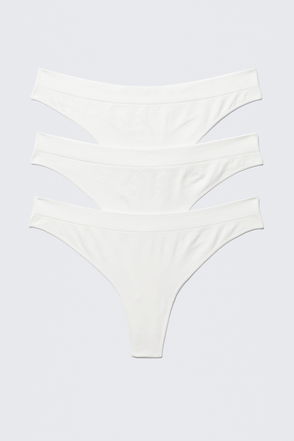 A two pack of lace thongs made form a soft and stretchy recycled polyamide mesh enhanced with recycled elastane.