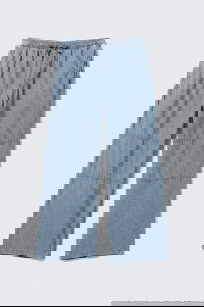 A pair of loose and baggy wide leg jeans made from a rigid cotton denim.