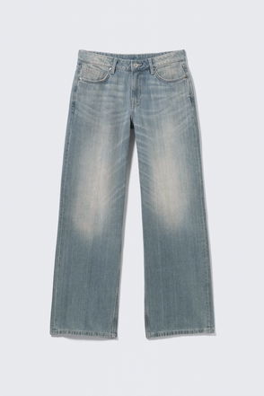 A pair of loose and baggy wide leg jeans made from a rigid cotton denim.