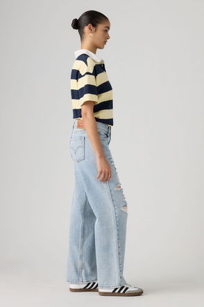 A pair of loose and baggy wide-leg jeans crafted from a rigid cotton denim, enhanced with recycled cotton. These favourites feature a button fly, a classic 5-pocket design with slanted side pockets and large back welt pockets. Stitched darts on the legs provide a structured fit.