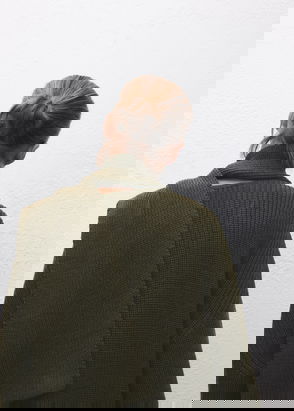 The Athena Sweater is a knit piece for the colder season. Cut in an oversized fit, it has dropped shoulders, wide sleeves ad is made of a stretchy, woven material.