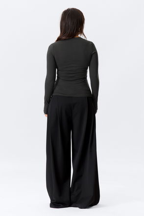 The Barbara Structure Long Sleeve charms with its light, semi-transparent material with a a wrinkled structure. Feminine details include a scallop seam finish and a loose turtleneck.