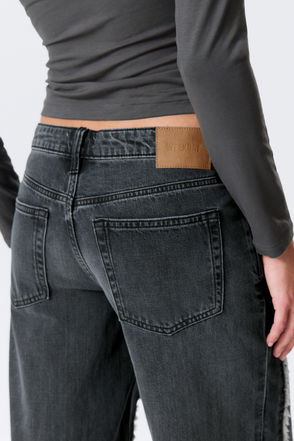 Beat Jeans are a pair of loose fit jeans with straight, extra wide legs and an extra high waist. Made of classic non-stretch denim, this pair comes in classic black with a softly washed finish.