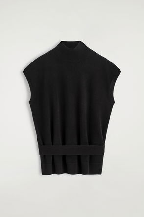 A tailor fit waistcoat made from a recycled polyester and viscose twill and lined with a silky recycled polyester satin. This dressed up layer has three front buttons, front and back darting, two front welt pockets and pointed hems in the front.