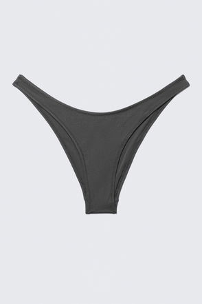 A pair of bikini bottoms with minimal coverage, made from recycled materials enhanced with elastane for extra flexibility.