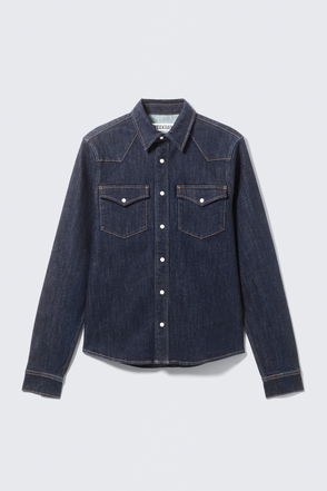 The Calam Denim Shirt is cut in pure organic cotton. Designed for a loose fit, it can be easily layered over chunky knitwear as a cover-up. A buttoned front with a pointed collar and rounded hem.