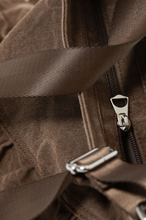 Carry Bag is a minimalist medium-size bag crafted from a durable material. It features a wide webbing strap that adjusts with a buckle. The bag closes with a zip and has an interior zip pocket. It measures 38 x 33 x 14 cm . The strap is 85 cm long.