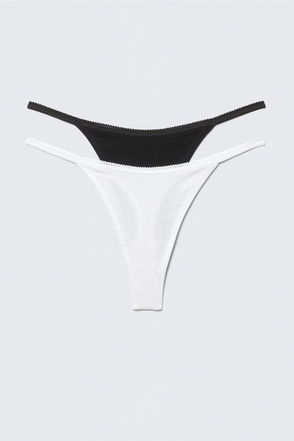The Cat Thongs in stretchy material have a regular waist with an elasticated waistband, high-cut leg openings and a subtly ribbed gusset.