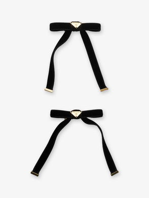 Clara Hair Clip Set includes two French barrette clips with an arched, rectangular design. One in a solid colour, and one patterned.