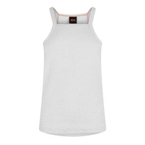 A classic undershirt style tank top with artwork on the front made from a soft cotton rib jersey. It has layered binding around the armholes and neckline that connect at the shoulders, and a straight stitched hem.