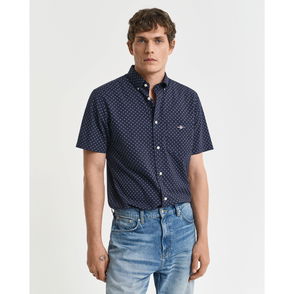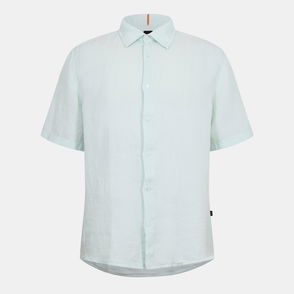 The Coffee Short Sleeve Shirt works great for the hot season with its light, silky material and a relaxed cut. It has a convertible collar with spread lapels and a visible woven structure.