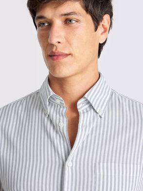 The Coffee Striped Shirt works great for the hot season with its light, woven jacquard material and a relaxed cut. Adorned with a subtle stripes pattern, it has a convertible collar with spread lapels.