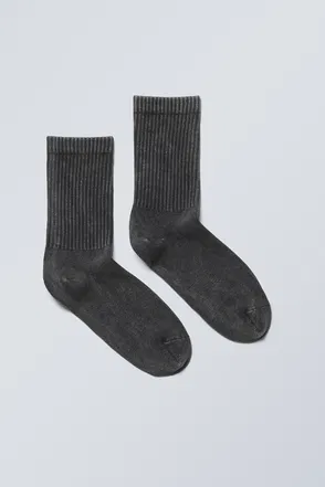 A pair of calf-high socks made from an ultra-soft and fuzzy recycled polyester blend with a touch of elastane for extra comfort and flexibility.