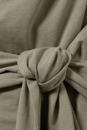 A lightweight mini dress crafted from crisp cotton poplin. Designed with a boat neckline and long, voluminous sleeves, it features adjustable tie details at the cuffs and back for a customisable fit.