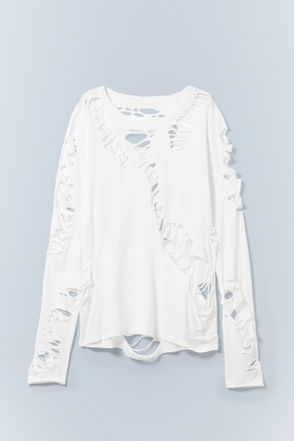 A tight-fitted long sleeve made from a light soft single jersey fabric enhanced with cotton and elastane for extra stretch. It has a deep open back and curved front and back stitching.