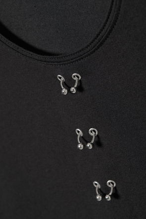 An off shoulder cut out long sleeve top made from soft and stretchy jersey. This bodycon layer has an almond shape cut out detail on the upper chest and falls at the hips.