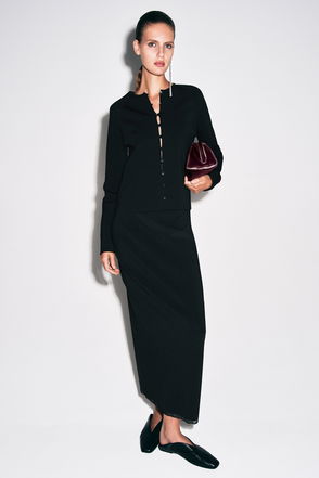An asymmetrical long flowy skirt with elasticated ruching detail and lace trim made from soft and silky satin. This standout piece has a smooth elasticated waistband, bias cut sections that gives it it's draped and flowy silhouette.