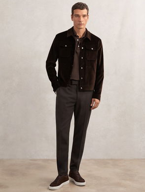 A faux fur jacket crafted from a super soft recycled polyester. It features a turn-down collar, a front zip closure, side seam pockets, an inner pocket, adjustable drawstrings, and is fully lined with quilted taffeta.