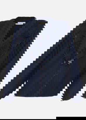 An asymmetric, fitted denim top crafted from an organic cotton denim enhanced with recycled cotton. It features thin adjustable shoulder straps, a folded front top hem, and a concealed side zip closure.